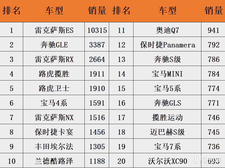排名榜首的依旧是雷克萨斯ES,单月销量为10315辆,是本次榜单中唯一一款月销量破万的进口车型,同样,它还是唯一一款月销量超过4000辆的进口车,可谓是“断层式”领先,1-9月份,雷克萨斯ES的总销量为89393辆。