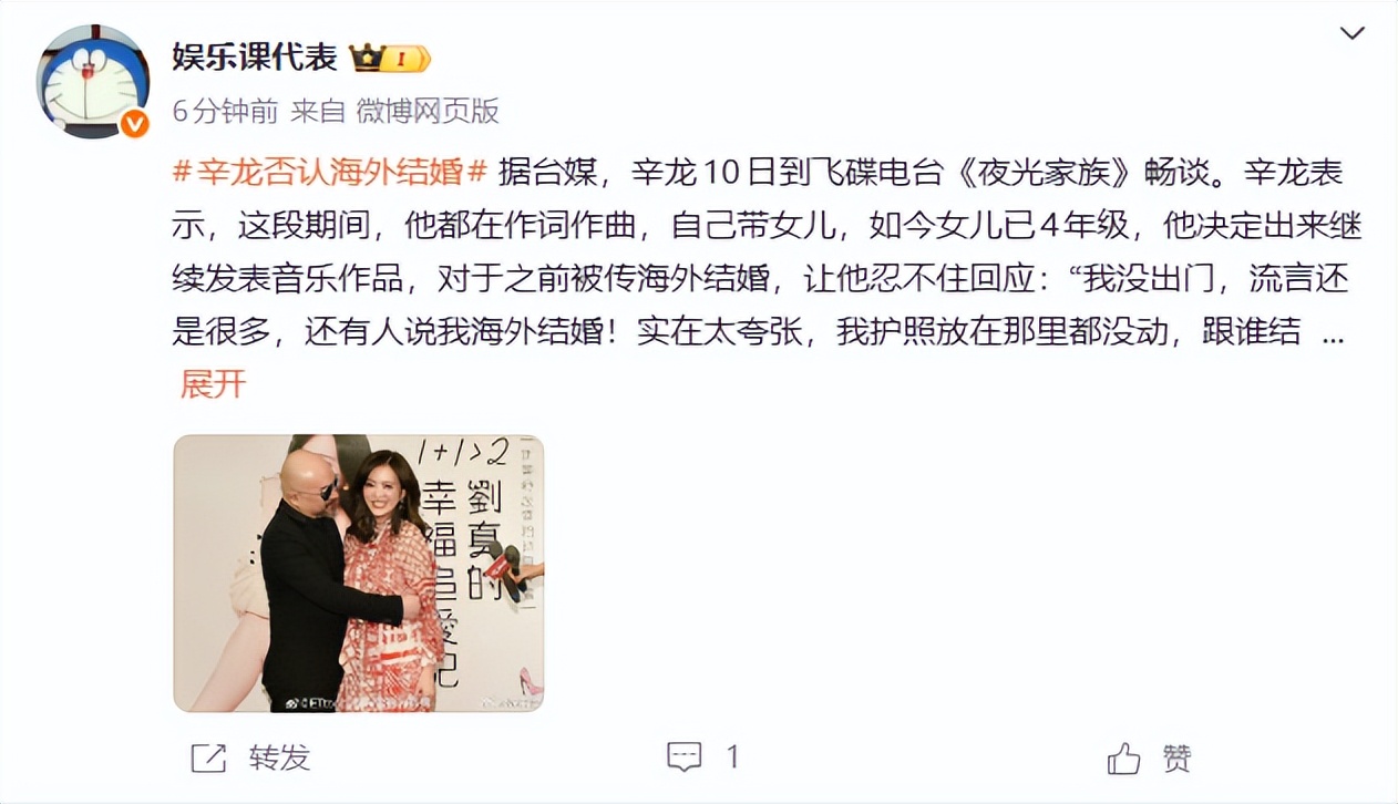 原来在这五年间,网络上有很多关于辛龙的传闻,比如说他在海外结婚了等等。