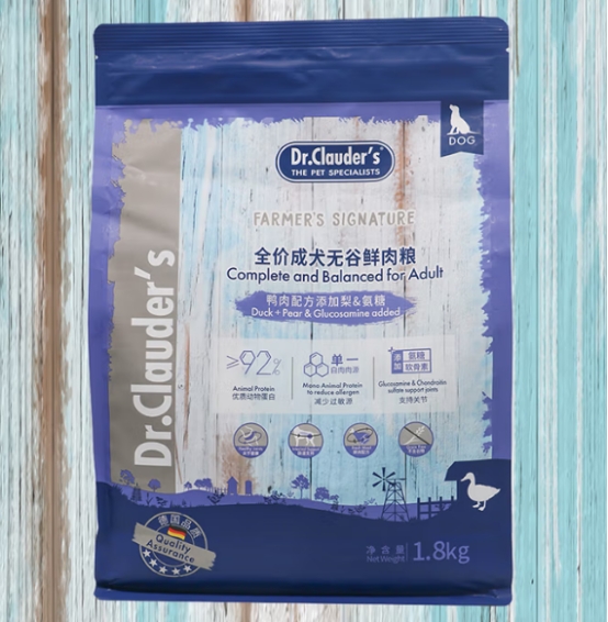 克劳德医生是来自于德国的高端宠物品牌,至今已有百年的历史,一直秉持着“为宠物营养负责”的理念研发,生产高品质的宠物食品、营养品和用品,用天然、健康和营养的喂养态度得到广泛的好评。品牌在2021年进入中国市场,进口品牌价格稍高,适合预算充足的铲屎官。这款狗粮为经典的鸭肉梨配方,鲜鸭肉和鸭肉粉作为主要肉类原料,加上梨、胡萝卜等天然果蔬,帮助狗狗清热降火,获得比较均衡的营养。粗蛋白30%,粗脂肪12%,提供充足的能量和营养,无论是成犬还是老龄犬,小型犬还是大型犬,都能得到日常活动和健康成长的支持。0谷物0人工诱食剂、色素、香精添加,用料天然安全。包装采用进口魔术贴,密封效果更佳,有效隔绝空气、湿气与异味,让狗狗一直吃到新鲜口感和不变质的主食。