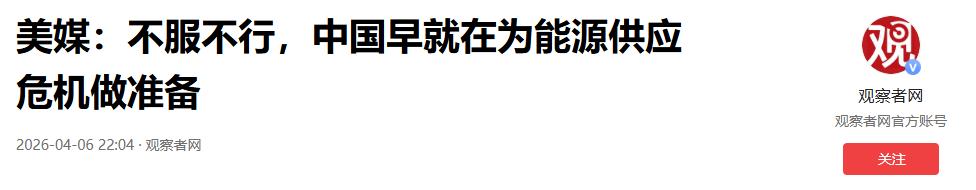 就在美国政坛内乱、中东战火不停的关键时刻,4 月 6 日包括《纽约时报》在内的多家美国权威媒体发布报道,直言尽管中东战争还在持续,全球能源供应面临巨大风险,但中国早就做好了充分准备,应对这场危机游刃有余,这一点让很多国家都不得不服。
