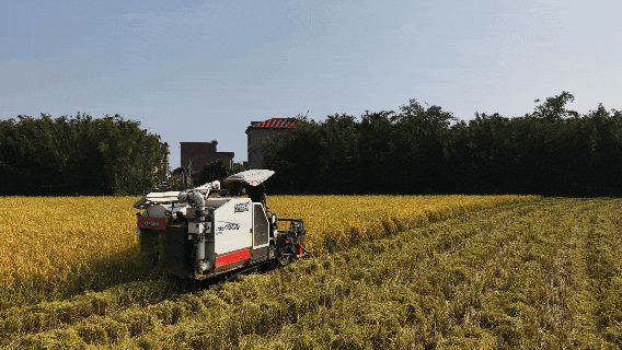 走进太和镇井塘村水稻种植地,金色的稻浪随风起伏,三台收割机正开足马力在田间作业,切割、脱粒、粉碎稻秆等工序一气呵成,田间地头洋溢着秋收的繁忙与喜悦。