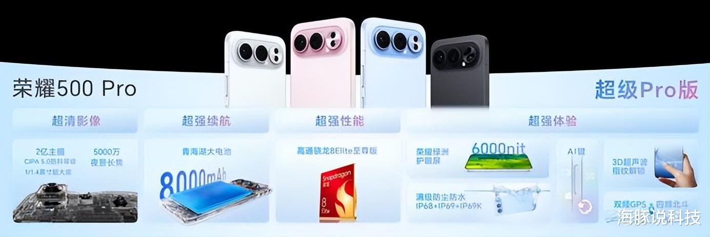 荣耀500系列以“双超旗舰”定位,将旗舰级配置下放到2699元起的价格区间,打造了“中端机价格,旗舰机体验”的产品标杆。其中,荣耀500标准版12GB + 256GB售价2699元,16GB + 512GB售价3299元;荣耀500 Pro版12GB + 256GB售价3599元,16GB + 1TB售价4799元。而且,首销还赠送价值999元的尊享服务,包括延长保修等,进一步提升了产品的性价比。