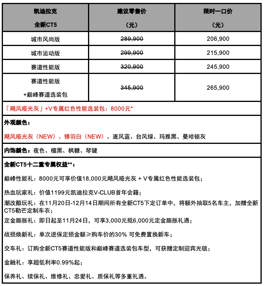 同时,用户还可享受12重丰富豪礼,包括以8000元解锁价值18000元热血装备的巅峰性能礼、限时3000元抵6000元的定金膨胀礼、限时赠送价值1199元V-CLUB会籍的热血玩家礼等。值得一提的是,全新CT5还推出了王炸级“战损焕新礼”,车辆单次定损超三成即可免费置换等价新车,为年轻人的第一台后驱车霸气兜底。源于纯粹的赛道热爱,凯迪拉克全新CT5出厂即满改,本色出街热血上场。