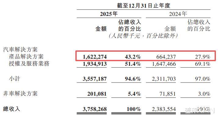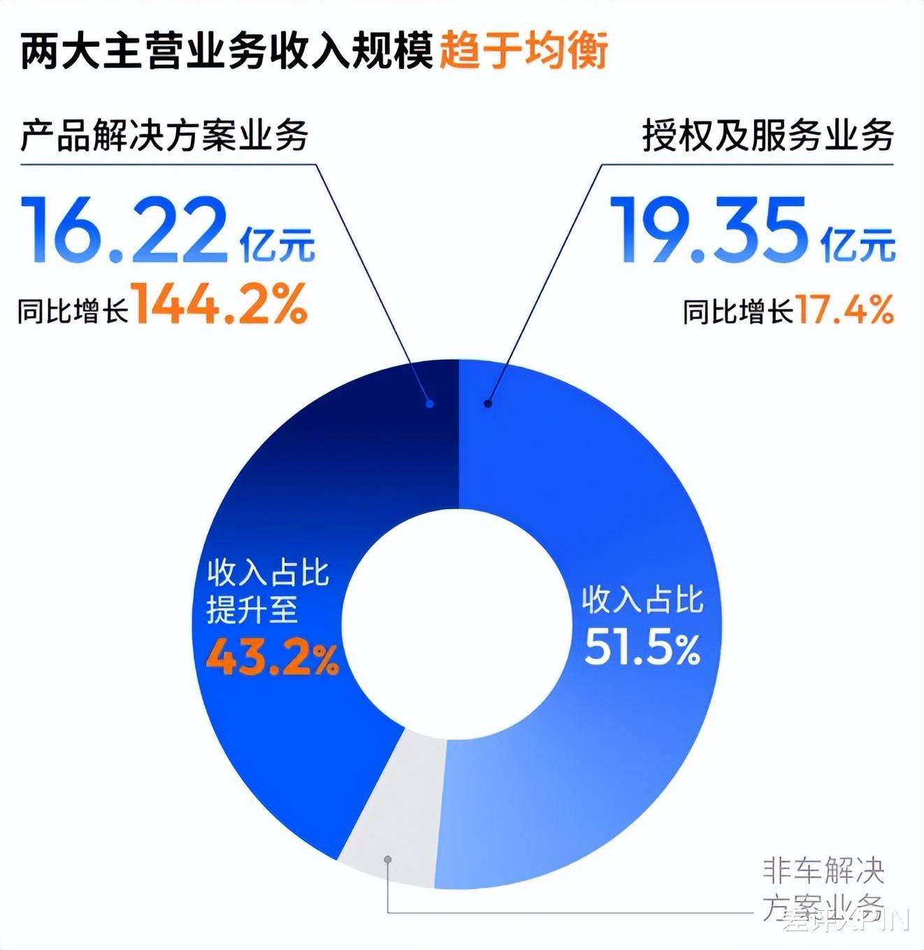 所以,在地平线一顿猛推之后,去年 “ 产品解决方案 ” 猛增 144.2%,财务上已经和 “ 授权及服务 ” 的比重差不多了。