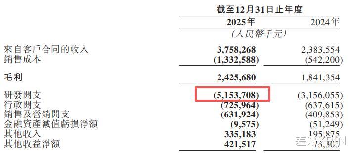 对,但得看这是怎么亏出来的。其实你会发现,亏损的大头基本都来自研发经费,去年,地平线在研发费用上就花掉了 51.54 亿,同比增长了 63.3%,营收全吃完还要再倒扣。