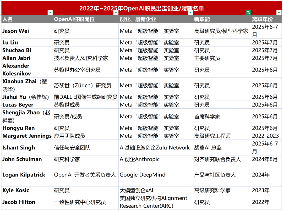 就像硅谷当年的“PayPal帮”一样,2022年至2025年间的OpenAI,也正在成为AI世界的“黄埔军校”。