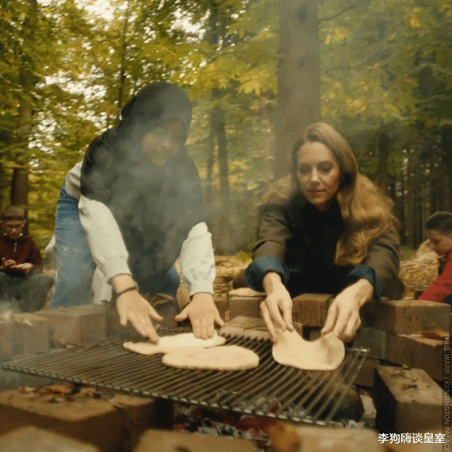 视频中,凯特与孩子们的互动更显暖心。法利小学专为英国困境儿童提供自然体验与住宿活动,此次在儿童慈善机构 Go Beyond 支持下,凯特和名厨吉尔・梅勒一起带孩子们户外烹饪:她蹲在草地上帮孩子递食材,围坐在篝火旁听孩子们分享故事,偶尔被童言逗笑时,眼角的笑意格外真切。有孩子提到 “喜欢秋天踩落叶的声音”,她立刻回应 “我家乔治和夏洛特也爱这么玩”,用家常话拉近与孩子的距离,这一幕被网友称赞 “像邻居阿姨般亲切”。