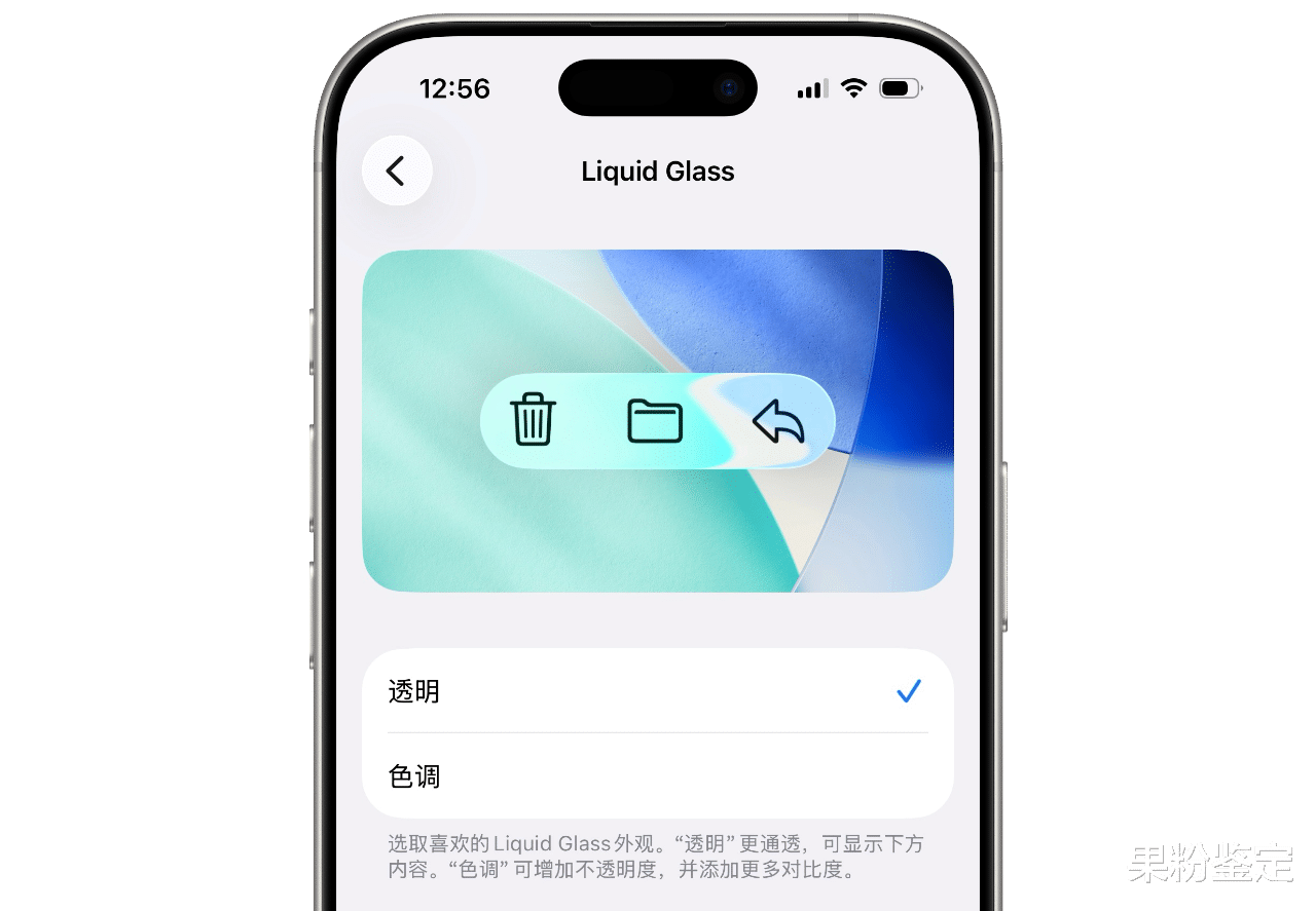 液体玻璃设置「色调」模式同时启用「降低透明度」、「增加对比」及「减少动态效果」