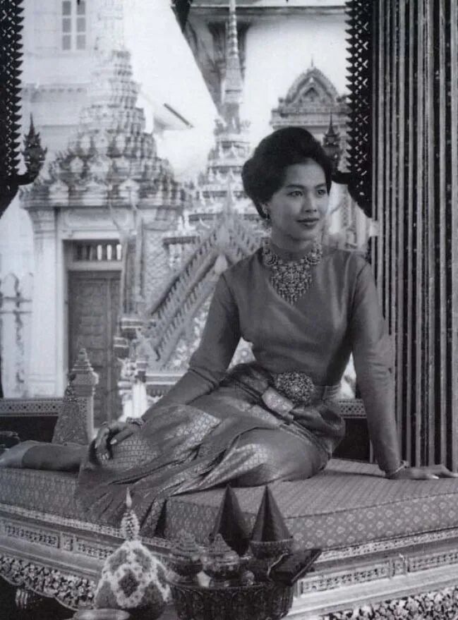 诗丽吉可不是普通王后,人家是根正苗红的贵族出身,爸爸是拉玛五世的孙子,算是老泰王的远房表亲,打小就含着金汤匙。年轻时的她是真好看,穿泰国传统服饰身姿挺拔,三尺细腰配清丽五官,和老泰王站在一起,妥妥的 “郎才女貌” 范本。