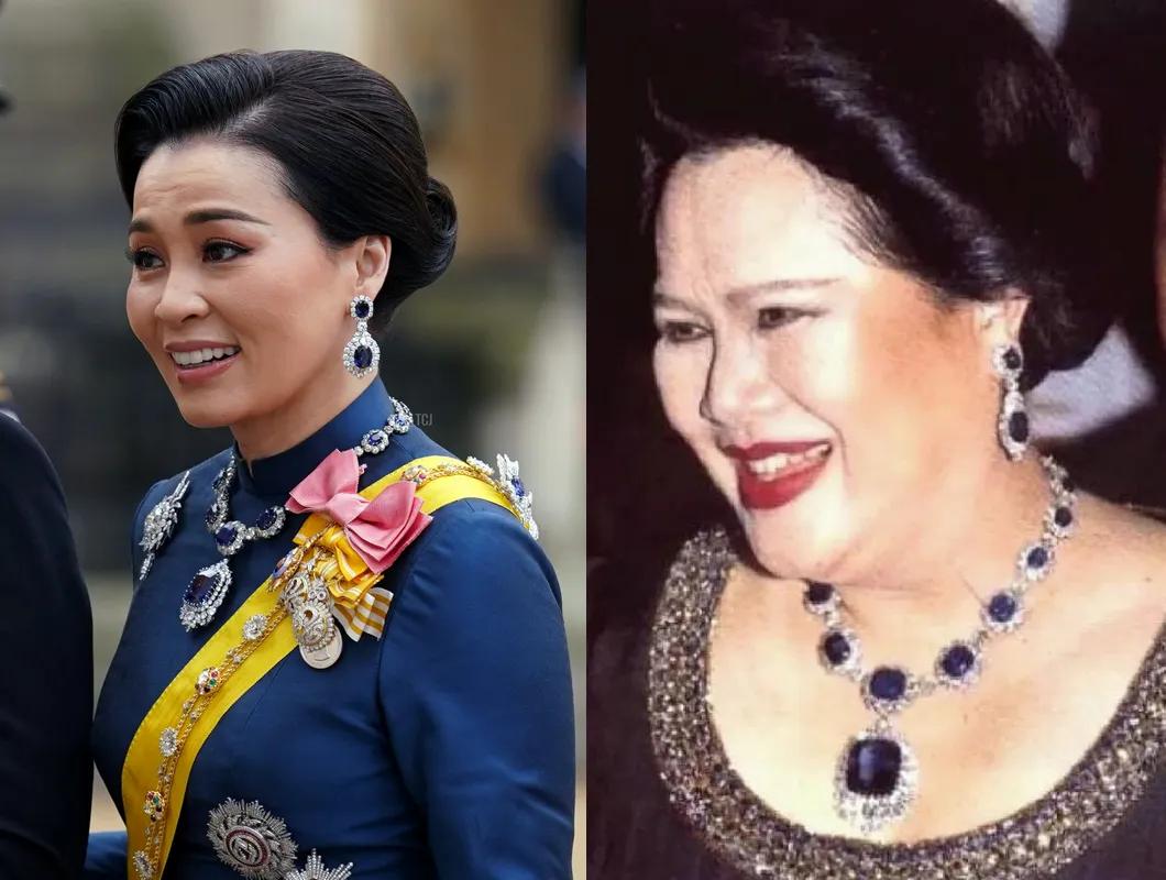 但最狠的还是她的珠宝箱 —— 足足 19 顶王冠,全是老泰王一点一点给她攒的。早年王室不富裕,她甚至把胸针别在头上当王冠撑场面,后来老泰王心疼,干脆斥巨资给她定制,每一顶都得她亲自拍板设计。其中有顶俄式王冠特别出名,能拆成项链戴,当年她出访比利时这么一折腾,直接惊艳了欧洲王室。