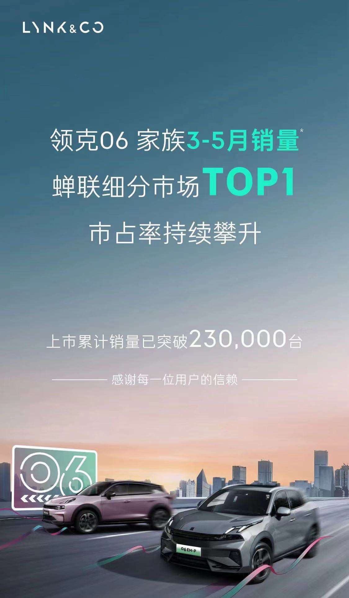 作为专注原创领域的领克品牌,销量一直遥遥领先,06车系更是凭借其卓越的产品力和精准的市场定位,连续三个月稳居细分市场销量Top1,成为小型SUV市场的领跑者。作为领克06家族的杰出代表,领克06Remix更是以出色的销量成绩,彰显了其强大的市场影响力和消费者的认可度。