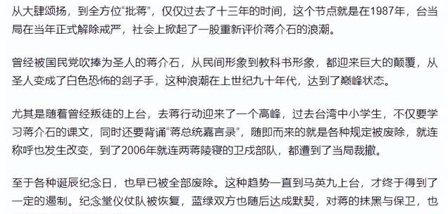 台湾社会,变成了从曾经的大肆颂扬到如今的全方位“批蒋”。