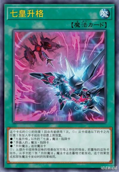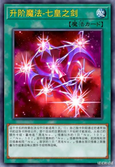 除此之外七皇水产还有着自己独特的魅力即携带七皇之剑通过特定送到牌堆顶或者神抽来使用,这种不稳定单卡还为提供非常高的爽度。