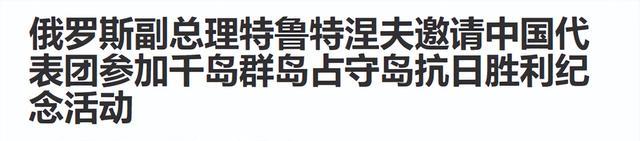 根据俄罗斯卫星通讯社5月22日的报道,俄罗斯副总理特鲁特涅夫邀请中方于9月份访问千岛群岛占守岛,参加战胜日本军国主义80周年纪念活动。