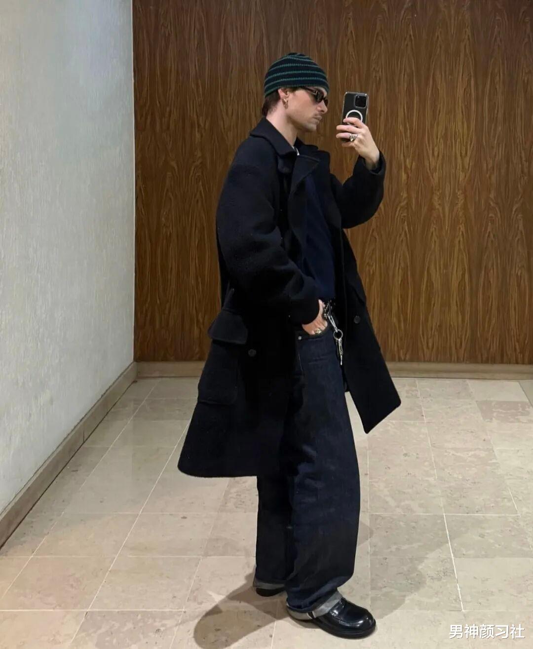 在选择大衣时,Jonathan 偏爱基础款,尤其是经典黑色。他深知,越是基础的单品,越能凸显穿搭者的品味。他的经典公式是:一件黑色长款大衣,简简单单地搭配一条剪裁得体的蓝色牛仔裤。