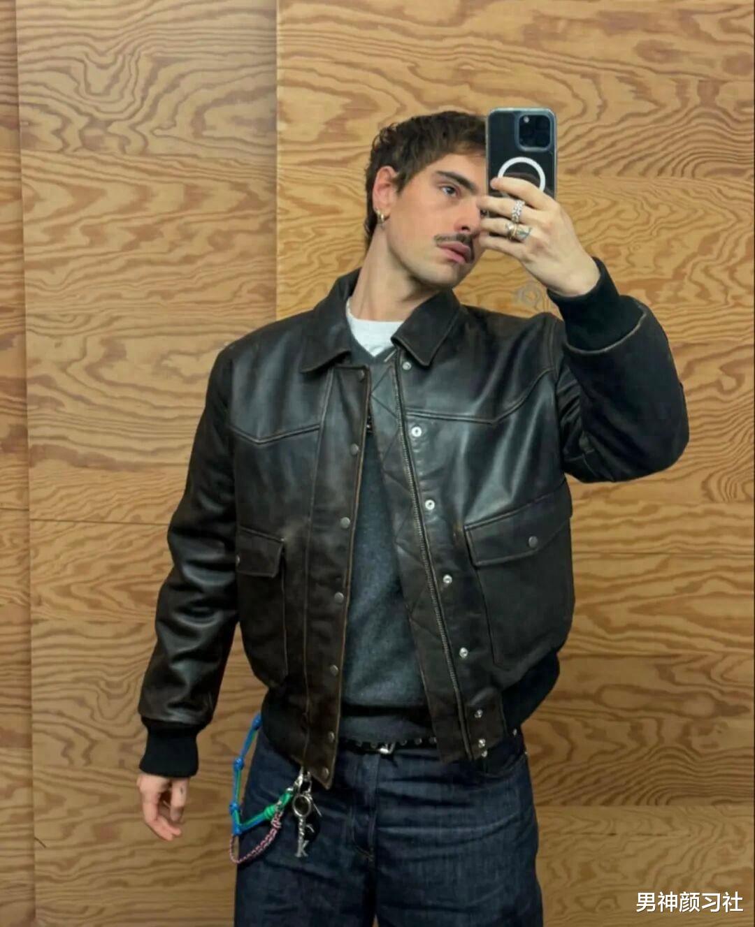 Jonathan是很会穿搭的男生,尤其是冬天的穿搭经常能给人很多灵感。他的衣橱中出镜率最高的单品非皮衣莫属。它自带的硬朗、酷感是任何其他外套无法替代的。然而,他从不满足于简单的内搭 T 恤。他的皮衣哲学是玩叠搭。