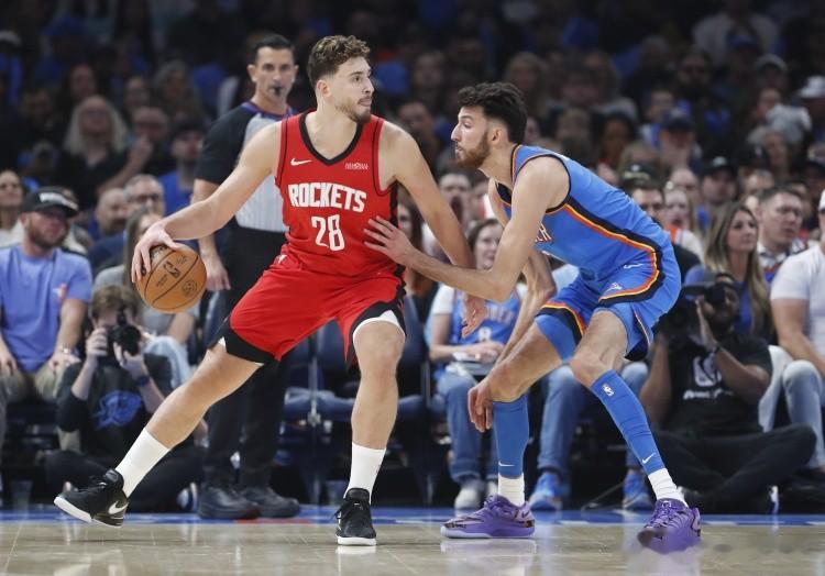 雷霆下半场命中8记三分,促使火箭的五大阵容防线外扩,给了亚历山大诸多中距离投篮的机会,火箭的后场篮板保护质量也随之下降。