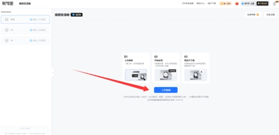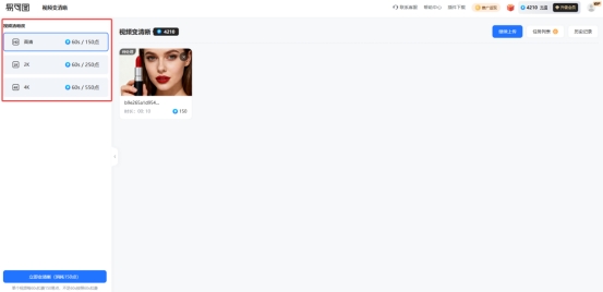 易可图的视频变清晰功能,基于AI画质增强技术,可以自动修复模糊画面中的细节,比如人物轮廓、商品边缘、背景纹理等。系统支持三种清晰度输出,包括高清、2K和4K,适合不同使用需求。