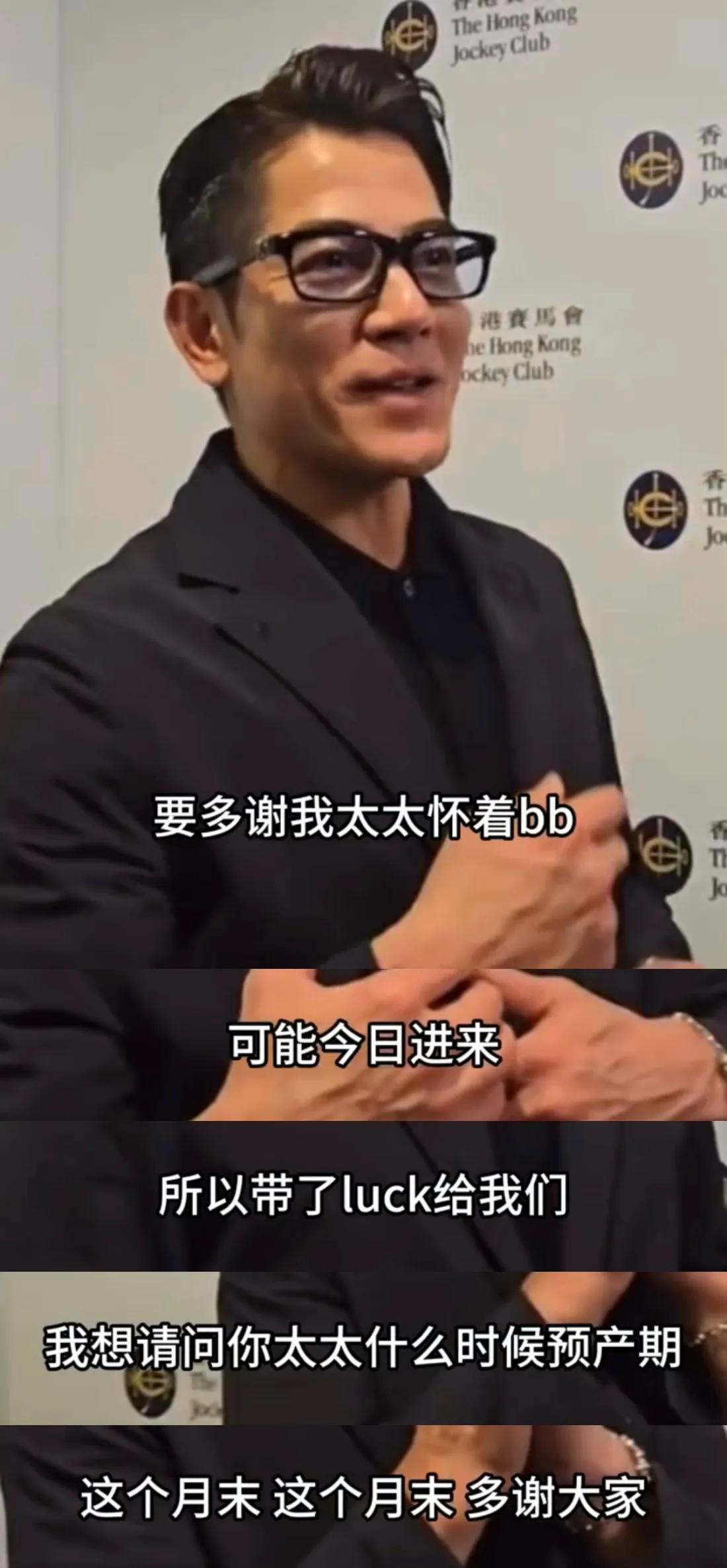 郭富城还接受了访问,并表示要感谢太太怀着宝宝过来支持,所以带给了他们幸运,被问到是否方便透露太太预产期时,心情大好的郭富城也大方透露是这个月末。