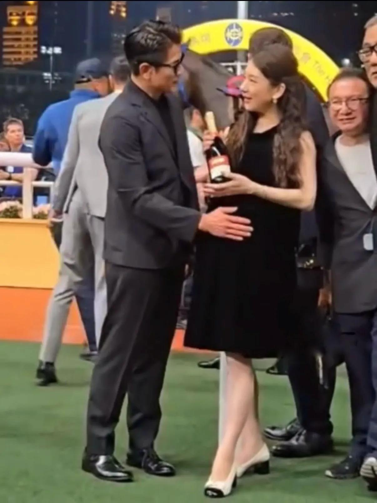 最后,郭富城方媛一起出席拉头马仪式,郭富城还把香槟递给方媛拿着,并轻抚老婆孕肚,满脸宠溺看着老婆。夫妇二人互动恩爱甜蜜。
