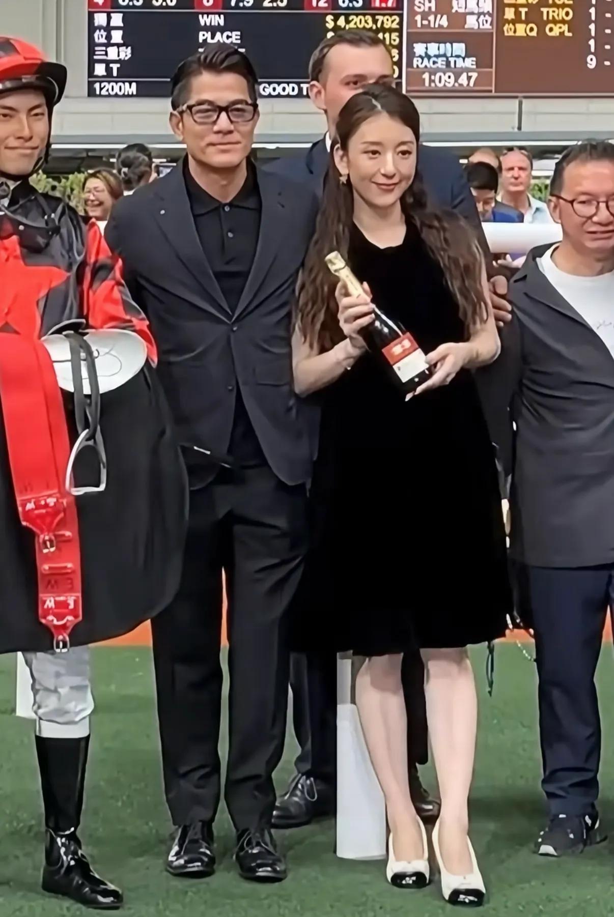 郭富城携妻子方媛一同现身马场,爱驹“舞林宝典”大热胜出,夫妇俩一起上场拉头马,尽显恩爱甜蜜。
