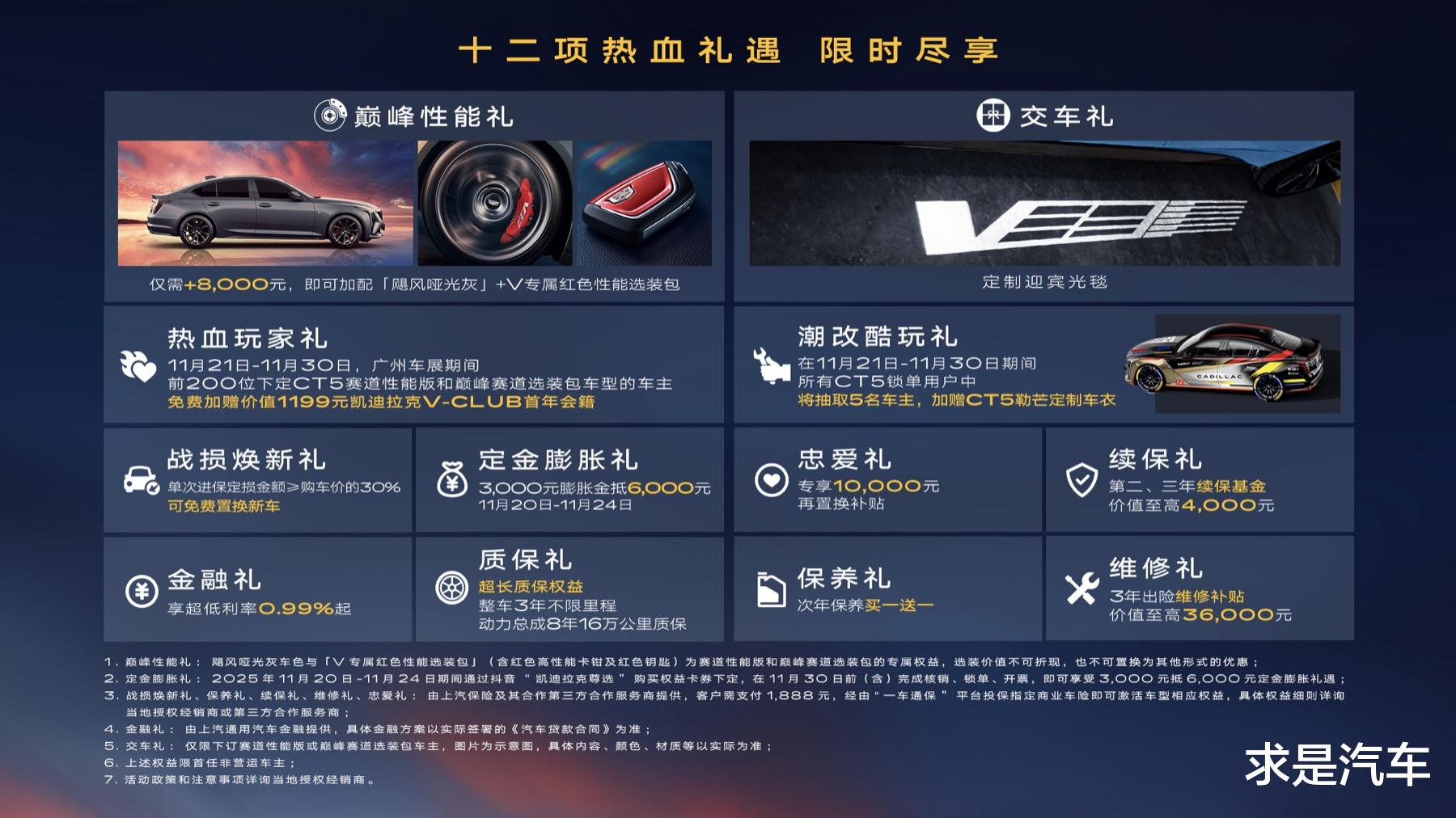 11月21日,2025广州车展凯迪拉克展台化身热血赛道派对,明星车型全新CT5以满改姿态热血登场。此次,全新CT5发布了V专属性能车色「飓风哑光灰」及V专属红色性能选装包:包括专属Brembo V标涂装红色高性能卡钳、赛道专属红色钥匙等性能装备。同时,用户还可享受12重丰富豪礼,包括以8000元解锁价值18000元热血装备的巅峰性能礼、限时3000元抵6000元的定金膨胀礼、限时赠送价值1199元V-CLUB会籍的热血玩家礼等。