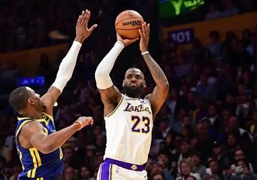 湖人没有浓眉,内线战力大打折扣,勇士也在第二节末反超比分,库明加三大步冲击篮下轻松得手,半场比赛战罢,勇士67-66领先湖人1分。下半场比赛开始,易边再战,维金斯空切篮下擦板打进一球,揭开第三节比赛序幕,库明加面筐冲击内线制造杀伤,站上罚球线两罚都有,拉塞尔回应一个关键三分球,库里灵动突破上篮连得4分,詹姆斯手感火热,内突外投屡屡得手,随后又强行突破扭腰上篮打成2+1,无奈勇士队得分点更多,替补主力全民皆兵,库里侧翼连飙两个三分球都有,保罗翻身跳投也稳稳命中,戴维斯空切内线连续得分。