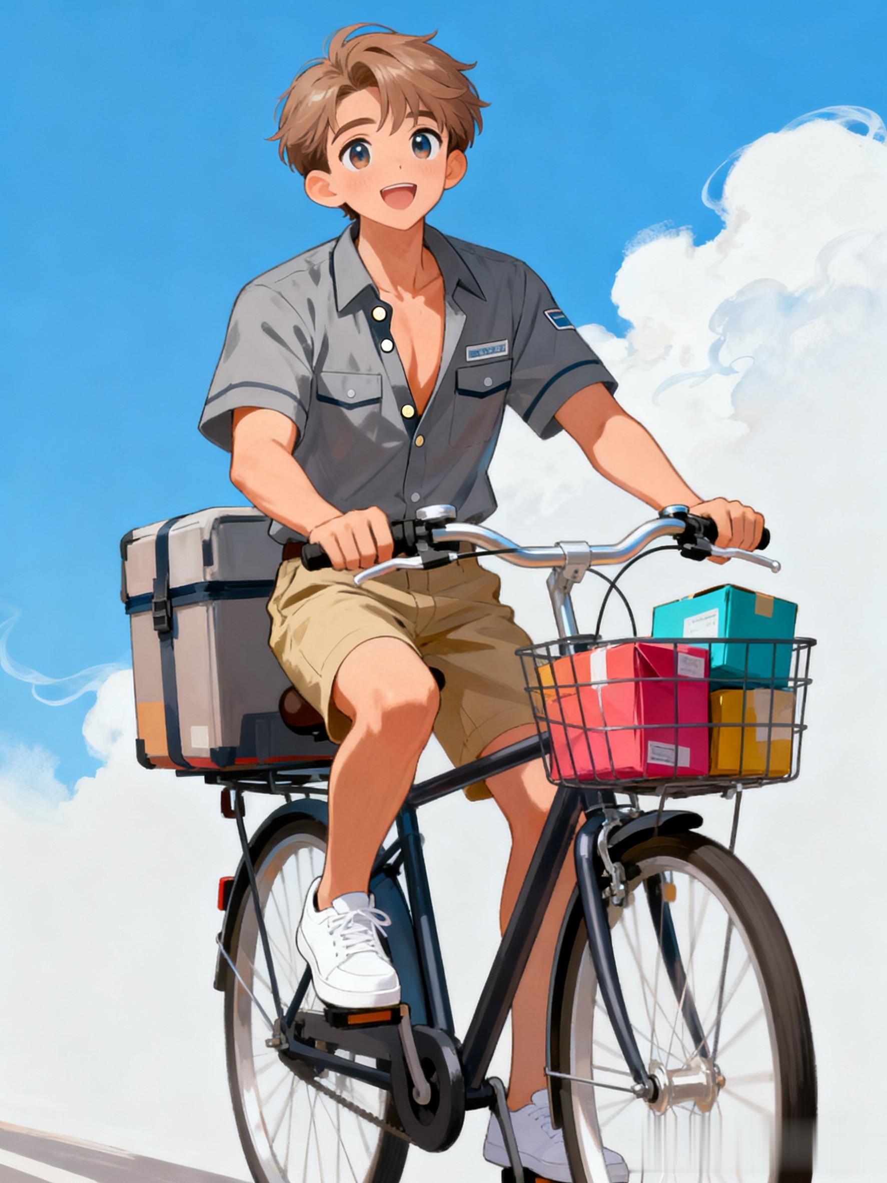 车厢不大,勉强能坐两个人,堆着几个空了的快递筐,但收拾得很干净。