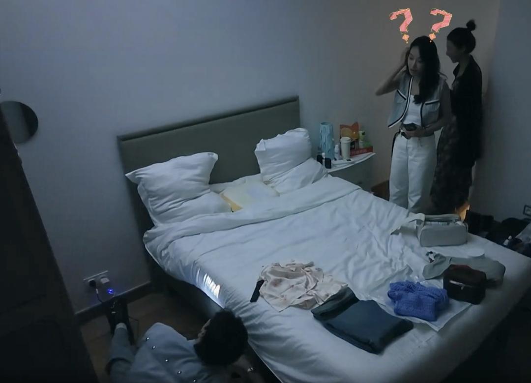 三:没进来之前的房间和他们俩进来后的房间,还是有区别的:床上多了水杯,床头柜多了个水杯,遥控也乱放。换成是个有洁癖的,领域意识特别强的人,私自进入房间,真的会当场发脾气,还好宋茜性格好,是个体面人,没有生气。