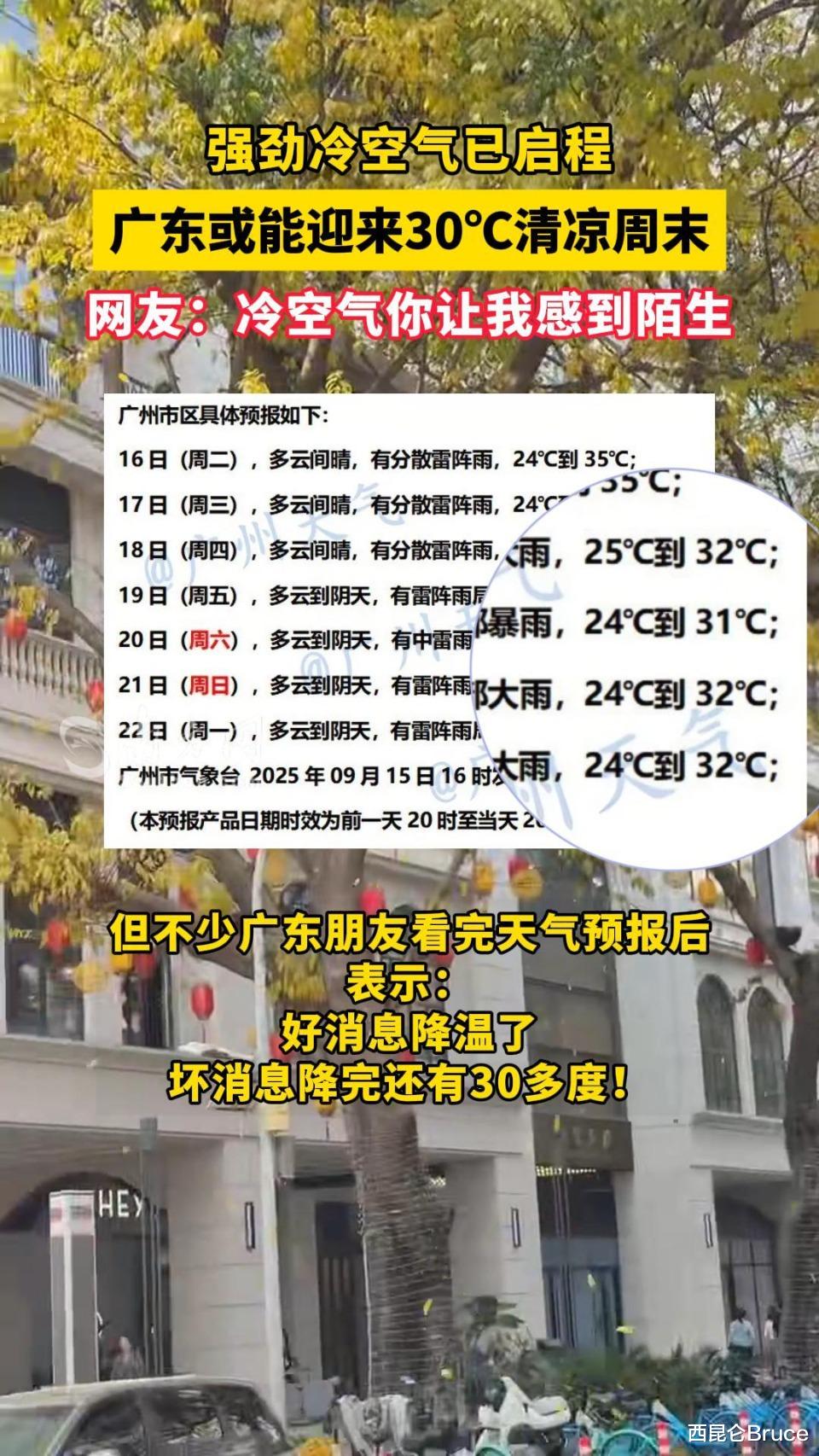 10月15号,中央气象台的一则天气预报让全国网友陷入“时空错乱”:甘肃西北部、黑龙江东部等地迎来小到中雪,而远在南国的广东却高挂高温预警,官方温馨提示“户外活动需防暑降温”。