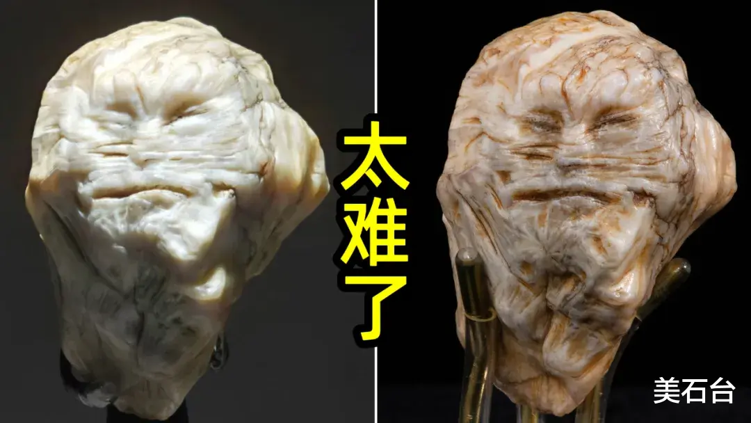 笔者还天真的以为,打假博主呕心沥血,花了三天三夜打造出一个极品头像石,猴王宝主痛哭流涕,送上50万现金,从此退出石界江湖。然后,几个石展的评委专家集体发道歉,剧情不应该是这样的吗?这才是你心目中的正义之光啊!结果呢?你竟然……认怂了!不要认输啊!求求你!笔者满地打滚,求你演好续集。此时此刻,为了写好这篇小作文,笔者再次翻看打假博主的鸡骨沙漠漆现场“模仿”视频,属实水平有点……次,玩石头几年的、带脑子的玩家都不会买,雕琢痕迹太明显。你非要说某些玩家偏爱这种捡漏,确实也有,装睡的人你永远喊不醒。这个问题不纠结。今天闲着蛋疼,又刷到几个视频,我滴亲娘啊,听说猴王宝主不要你还原95%的近似度的天级难度了。