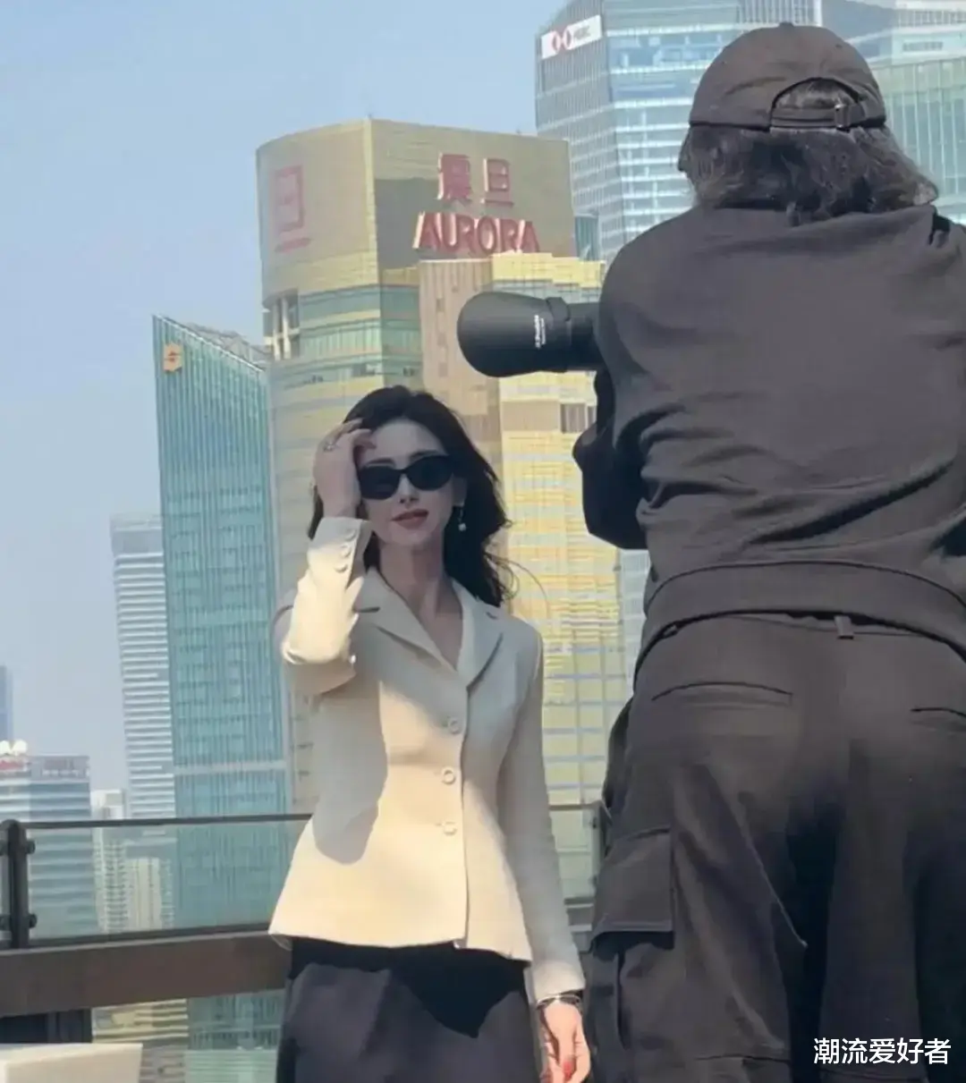 尤其是戴上墨镜后,整个人气场瞬间飙升,即便是在路人随意的镜头下,依然美得耀眼,仿佛职场剧中的女主角走进了现实。