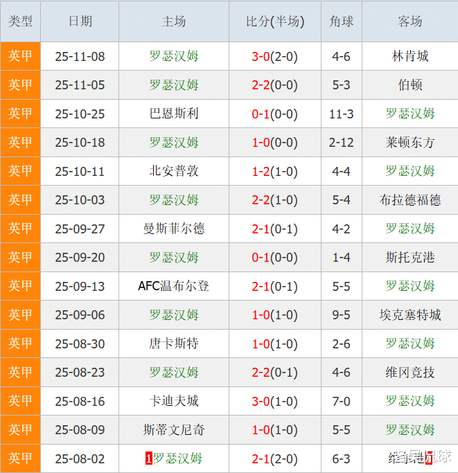 相比卢顿的飘忽不定,罗瑟汉姆算是低开高走的典型。联赛首轮取胜后,他们一度9轮只拿到1胜,但最近5轮他们豪取4胜1平,排名持续上扬。最近的英锦赛和足总杯,他们也都有不错表现。本赛季初期还在为卢顿效力的后卫霍尔姆斯是唯一伤兵,但他9月初就重伤至今了,可忽略不计。