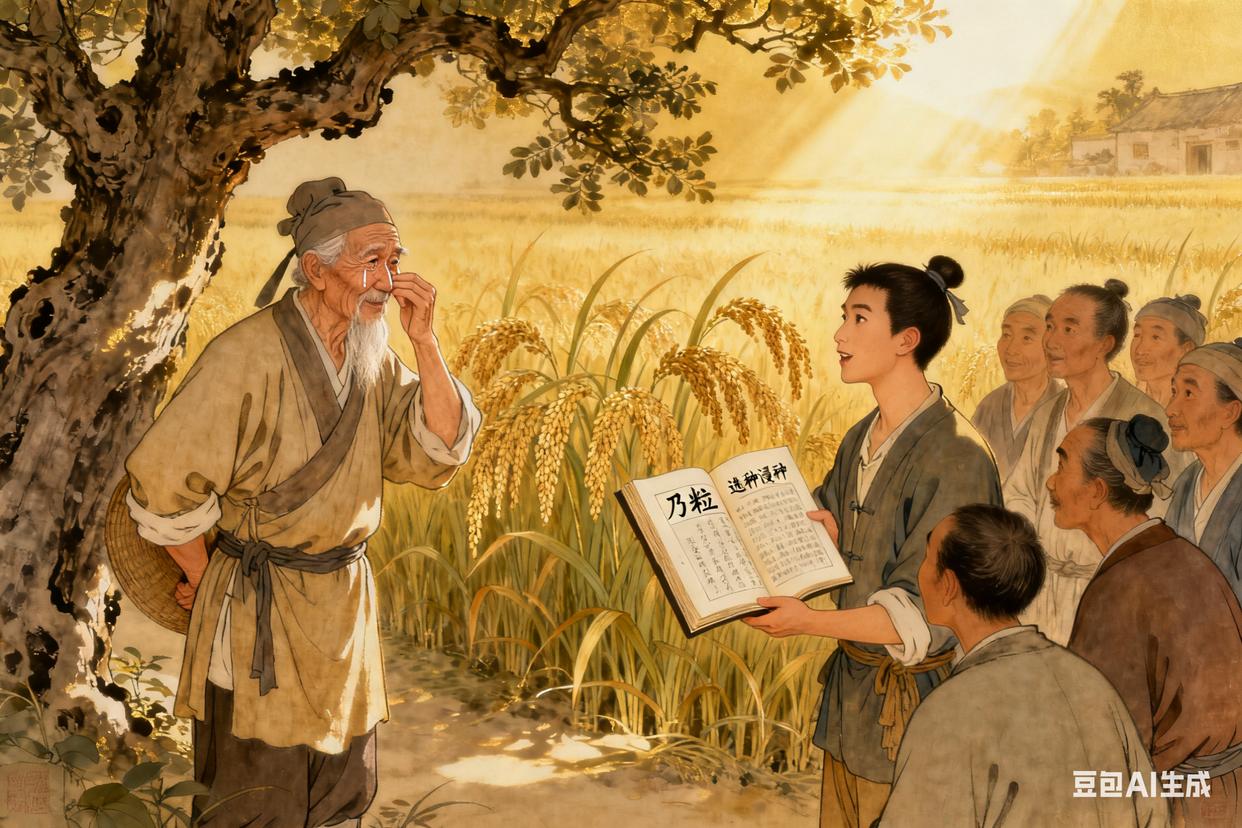 晚年的宋应星,住在奉新老家,看着家乡的农户用《天工开物》里的方法种稻,产量比以前高了三成。有次他在村口的老槐树下,看见一个年轻的农夫拿着《天工开物》,跟其他农夫讲“选种要选穗大粒圆者,浸种要用温水泡三日”,他站在树后,偷偷抹了眼泪——当年落榜的失落,写书时的辛苦,在这一刻都成了甜的。