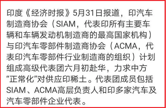 最近,阿三在印巴之战中的神操作,让他们整国都在自嗨之中,吹的牛X越来越大,没想到我国对重稀土严厉管制,使得阿三家的塔塔快要停工了。