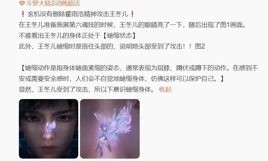 这里霍雨浩的镜头引发了争议,争议点是他到底有没有精神攻击冬儿。原著里是有的,还导致冬儿吐血,怕他生气选择了认输。而动漫有没有精神攻击,目前是有两种意见。