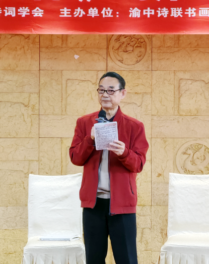 蔡有林首先在会上致辞,他说:今天《微型诗史话》新书首发会在重庆隆重举行,我代表重庆市诗词学会表示热烈的祝贺!在这喜庆的时刻,我想说三个一、即三点感想。一群令人敬佩的老诗家。先说重庆诗词学会的老诗家。本月9日至11日,本会原副会长万龙生、王端诚先生倡导建立的东方诗风论坛暨格律体新诗研讨会,在上海松江召开了全国性会议。会上展示了重庆在格律体新诗理论和实践上取得的领先的成果;19日,在重庆华科公司召开了本会原会长汪崇义、顾问余恢毅合著的诗书集《吃茶去》举行首发茶会;今天,本会原党支部书记、常务副会长唐元龙先生和华心先生合著的《微型诗史话》新书首发会在这里隆重举行;另外,本会原会长凌泽欣先生和本会原副会长陈仁德先生合著的《巴渝两家诗选》也公开出版发行。这些壮心不已的老诗家,令我们赞叹!佩服!