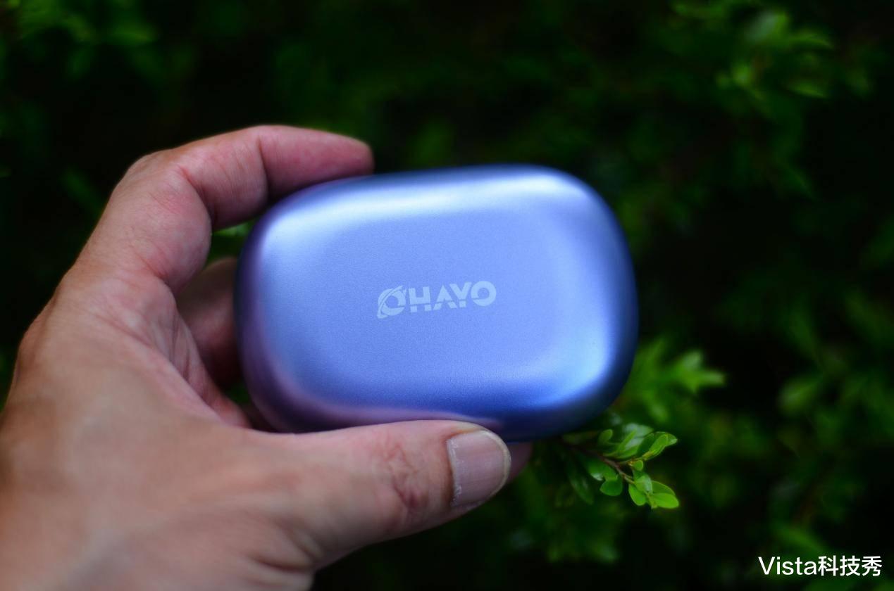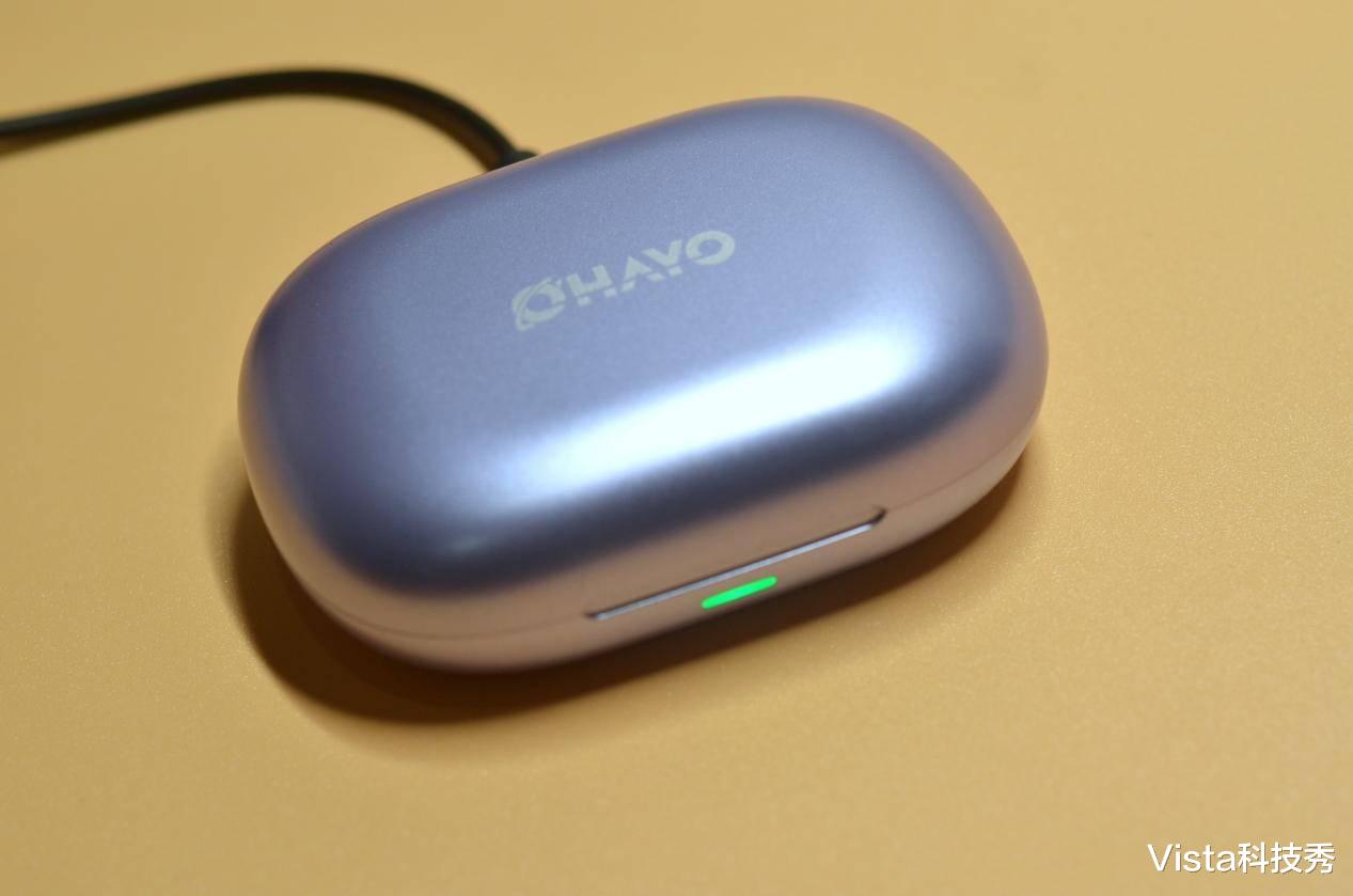 单看这灵动紫配色就很喜悦,充电仓圆润带磨砂设计,防止滑手还不易沾染指纹,正面中间为OHAYO雷登品牌LOGO,握在手中手感舒适。