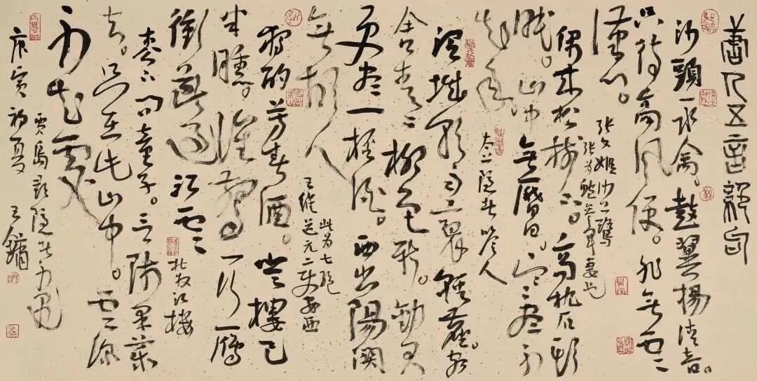 沈鹏的草书风格打破传统,注重书外修养,拍卖市场表现突出。沈鹏的草书线条富有“屋漏痕”般的自然韵律,打破了传统的章法束缚,建立了“书内书外,艺道并进”的独特体系。沈鹏的作品流通量巨大,超过10万件,其中四尺斗方更是以540万元的高价成交。