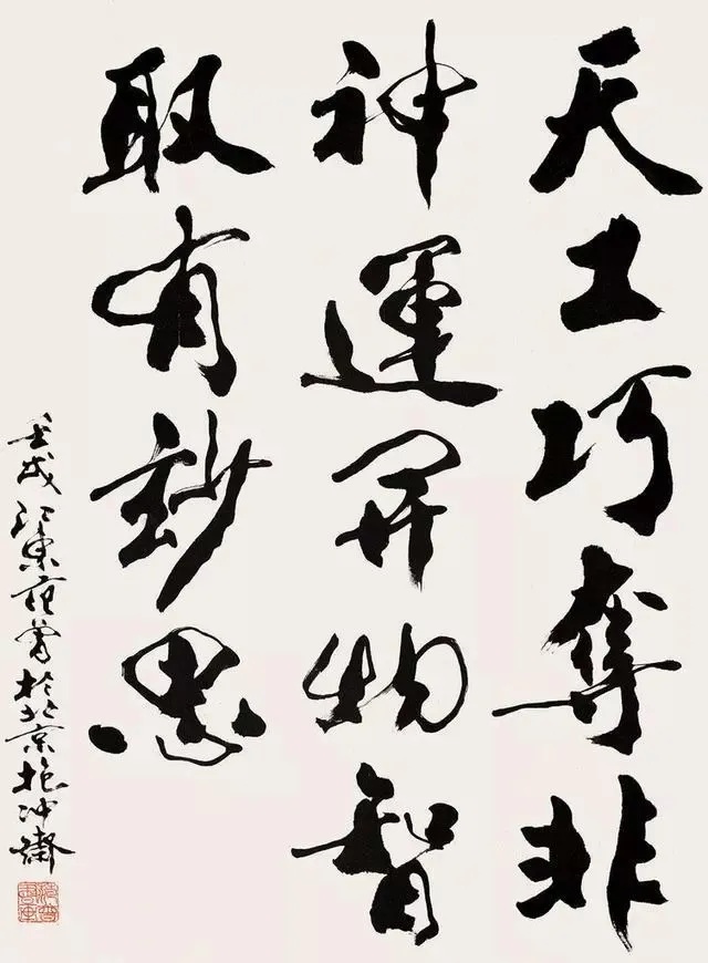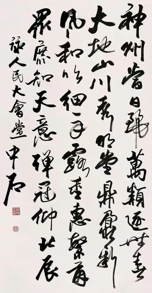 李铎以雄健豪放的“李体”行草著称,其作品具高度国际影响力,对书法作为外交手段的运用贡献卓著。李铎创“李体”行草,笔力雄健豪放,兼具金石硬度与战场气魄,被赞誉为“铁血书家”。其作品流传至数十个国家,多次赴海外参展讲学,有效强化了书法作为外交手段的功能。