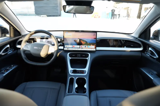 进入车内会发现车内的设计风格延续了外观的简约与灵动,并且保持了圆润可爱的设计。中控台采用对称式布局,搭配14.6英寸悬浮式大屏,中控两侧为镀铬装饰的“双翼”,左侧内嵌了8.8英寸仪表盘,而右侧则在烤漆面板内嵌立体城市氛围灯,具备不错的设计感。中控内置 Flyme Auto 车机系统,支持壁纸式桌面,语音系统可双音区识别,轻松控制多媒体、导航、空调等功能。