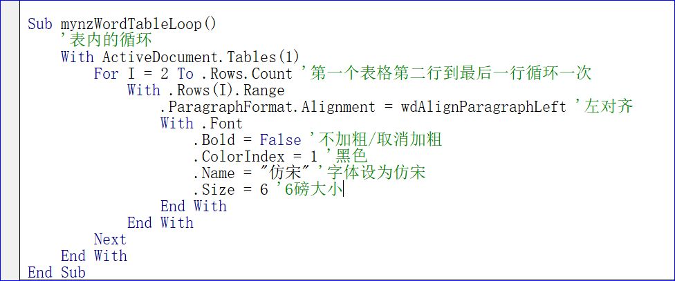 第六章 Word对象及示例之20 表格内循环的操作Operation of looping in TablesSub mynzWordTableLoop()