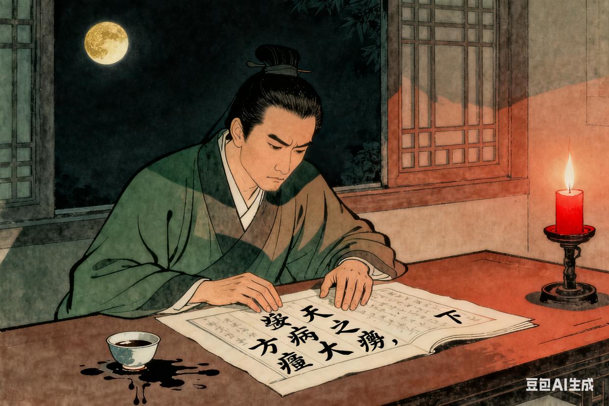 文帝八年,诸侯国的势力越来越大,匈奴也频频侵扰边境。贾谊看着朝堂的奏折,心里越来越急,他在梁王府的书房里,写下了《治安策》。“天下之势,方病大瘇。一胫之大几如腰,一指之大几如股”,他把诸侯国比作身上的毒疮,不及时医治,迟早会危及性命。写这篇策论时,他常常写到深夜,想到国家的隐患,就睡不着觉,有时拍着桌子,声音都哑了。在策论里,他还写道:“臣窃惟事势,可为痛哭者一,可为流涕者二,可为长太息者六”,每一个“痛哭”“流涕”,都是他对汉朝命运的担忧。这篇《治安策》递上去后,文帝看了很久,虽然没有立刻全部推行,但后来晁错削藩、汉武帝加强中央集权,都借鉴了里面的主张。