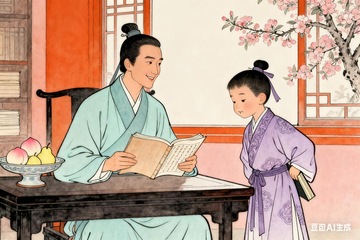 回到长安没几天,文帝就任命贾谊为梁怀王太傅。梁怀王刘揖是文帝的幼子,才五岁,深得宠爱。贾谊到梁王府时,刘揖正拿着玩具弓箭射鸟,见了他,就把弓箭一扔,跑过来要他讲故事。贾谊笑着摸了摸他的头,从那天起,他每天都教刘揖读《诗》《书》,讲古代圣王的故事。刘揖有时候调皮,会把书藏起来,贾谊不生气,只是坐在案前,给刘揖讲孔子教弟子的故事,直到刘揖自己把书拿出来,低着头说:“太傅,我错了,我再也不藏书了。”看着刘揖认真读书的样子,贾谊心里渐渐有了慰藉——梁怀王是文帝的爱子,要是能把他教成贤明的诸侯王,说不定能为汉朝的稳定出份力。