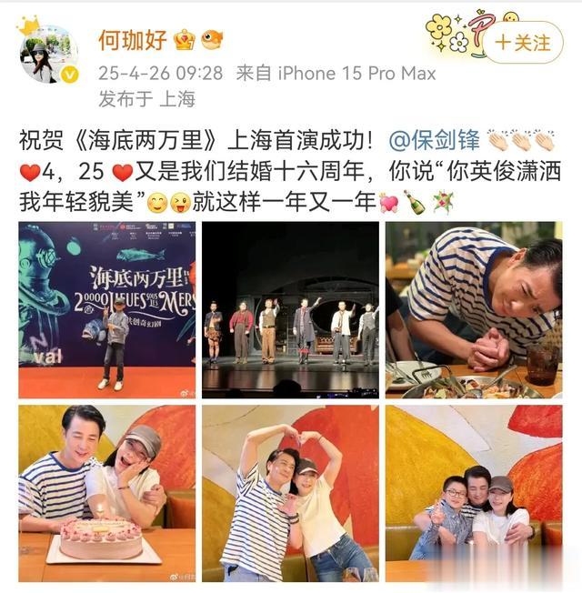 4月26日,保剑锋罕见晒出了全家福,庆祝结婚16周年,他的老婆何珈好还高调发文表白,两人的感情甜腻恩爱,羡煞旁人。