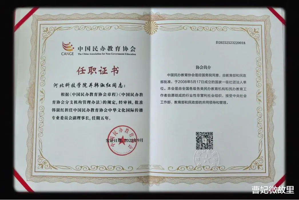 在此次成立大会上,河北科技学院校长助理韩淑红同志凭借其丰富的教育管理经验和在国际交流领域的积极贡献,被聘任为专委会副理事长。这一重要任职,不仅是对韩淑红同志个人能力的认可,更是对河北科技学院办学实力与国际化视野的充分肯定。
