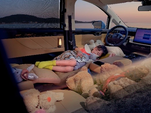 更有冰箱彩电快乐双件套神助攻,原厂冰箱装满冰镇草莓,吸顶电视播放孩子喜欢的动画片,孩子们的笑声和欢呼声一下就填满了整个空间,让漫长的旅途变得轻松愉悦。