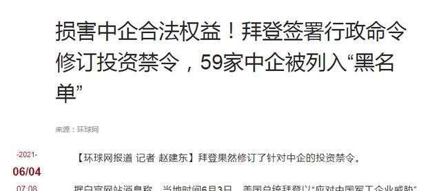 拜登与特朗普而言虽然总是大嘴炮,可是在制裁中方企业这件事上达成了高度一致,特朗普早在2020年就下达了针对中方的投资禁令。