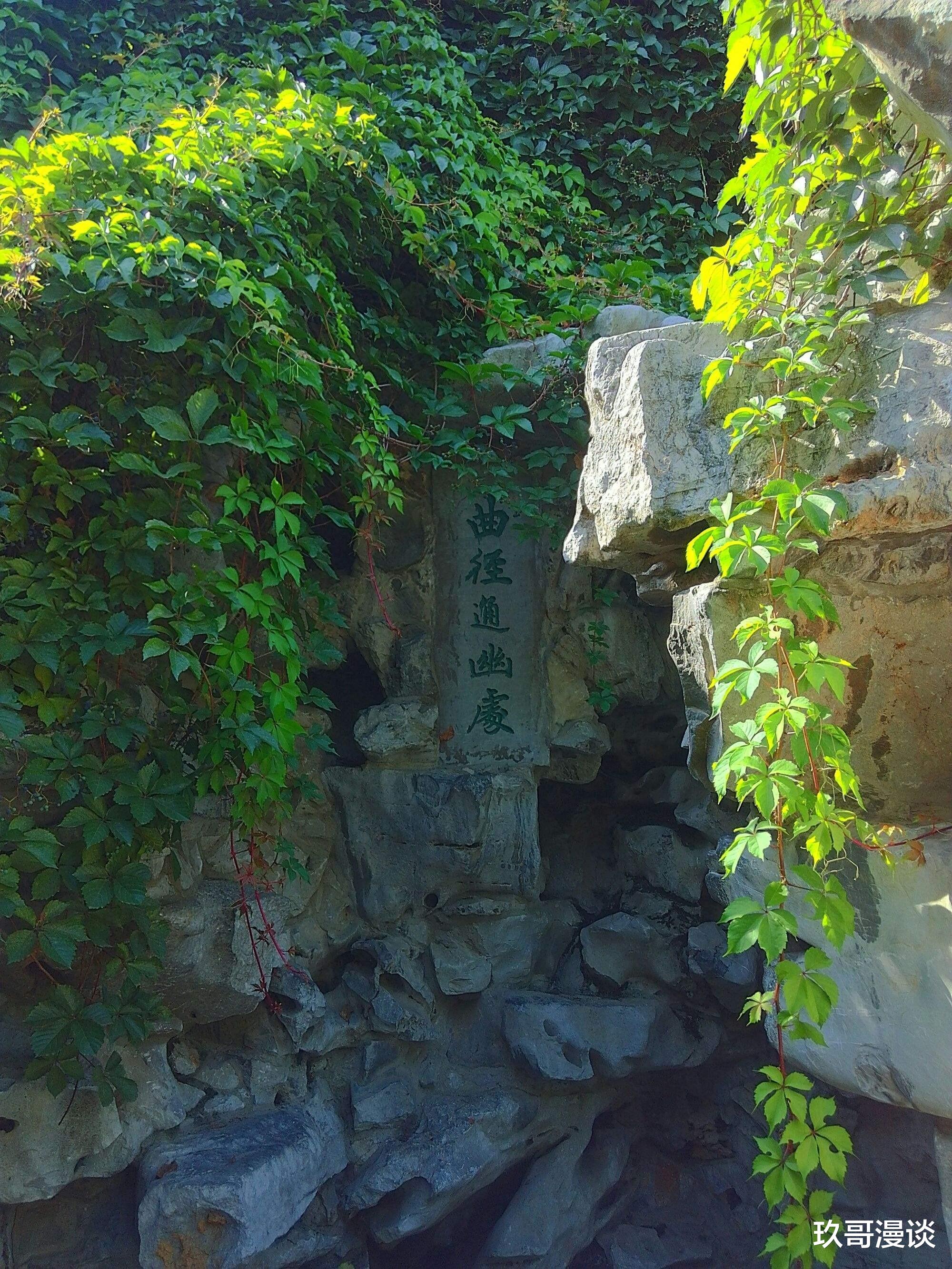 曲径通幽位于大观园南端,是一条运用“藏景”手法而建的假山小路,取自唐代常建《题破山寺后禅院》诗中“曲径通幽处,禅房花木深”的意境。当您走进大观园后,首先看到的是这座翠障似的假山挡在前面,往前一望,见白石崚嶒,或如鬼怪,或如猛兽,纵横拱应,上面苔藓成斑,藤萝掩映只有穿过羊肠小径,才能看到大观园内的风光。中国古代园林强调赏景路线曲折起伏,变化万端,反对一览无余,正像贾政所说的“非此一山,一进来园中所有之景悉入目中,更有何趣”,这座假山正是体现了这一艺术特点。