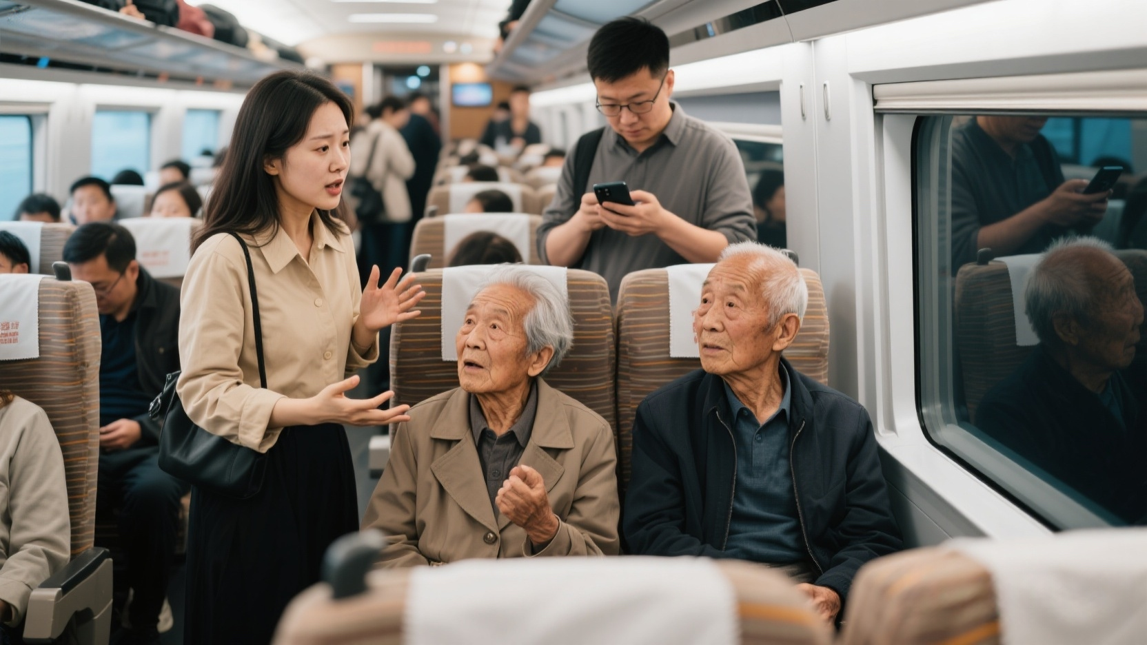 我费了老大劲把行李箱塞上去,刚坐下喘口气,张伟就发来微信:【老婆,我的座位被人占了,两个大爷,态度挺硬,不肯让。咋办?】